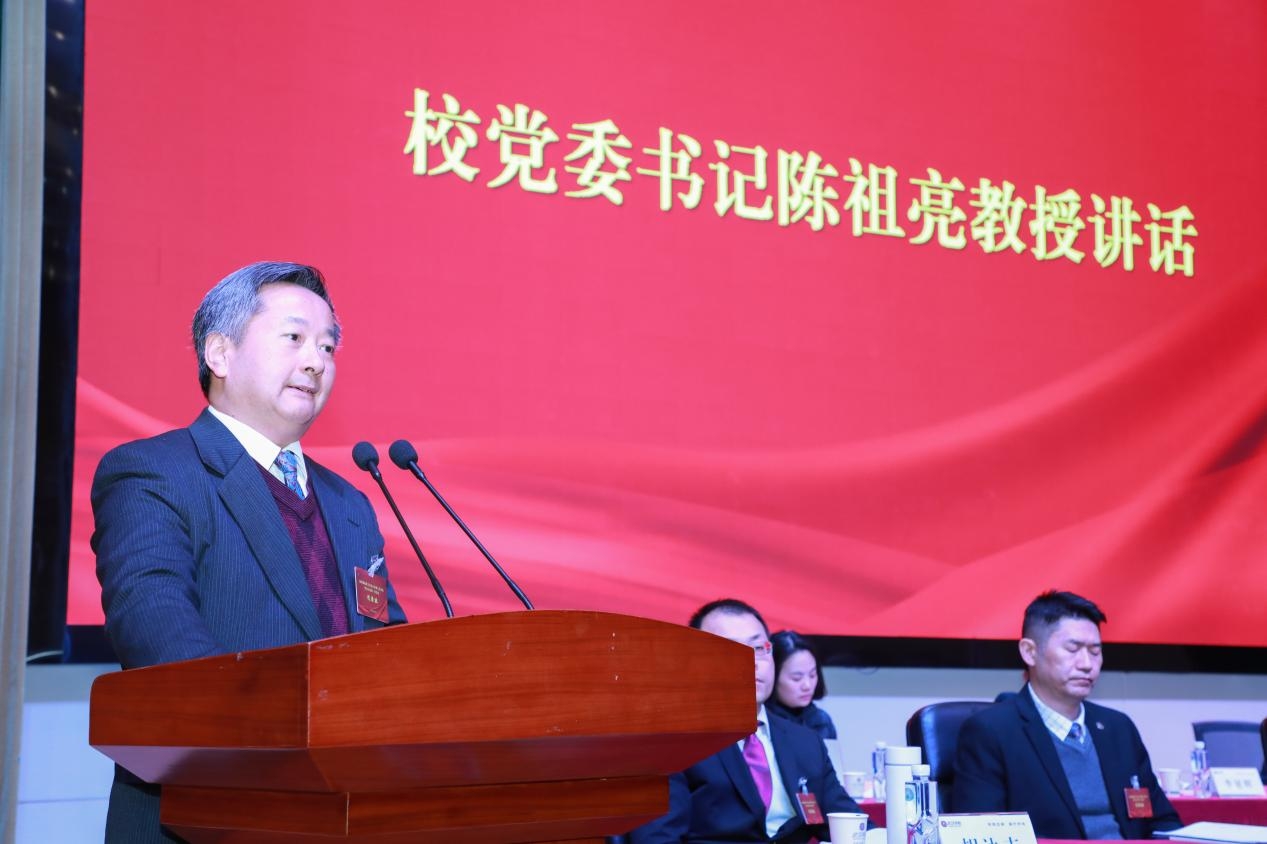 闭幕式上,校党委书记陈祖亮教授讲话。他指出,本次会议各位代表结合审议相关文件,联系本单位实际,提出了许多宝贵意见和建议。“两代会”已经成为学校民主管理的重要部分,成为学校治理结构的一个重要方面,也成为了学校教职工参与学校民主决策的主要平台。