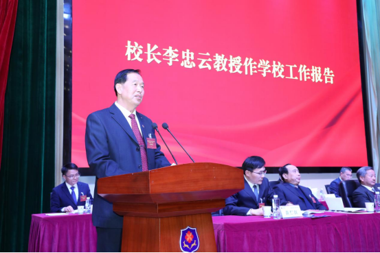 校长李忠云教授作题为《承前启后继往开来持续奋斗再创辉煌聚焦内涵建设推动学校高质量发展》的工作报告。报告指出,2022年以来,学校以迎接教育部本科教学工作合格评估为主线,围绕立德树人根本任务,加强教学基本建设,强化师资队伍建设,深化教风学风建设,优化服务保障建设。全校师生员工团结一心、克难攻坚,高质高效完成各项工作,取得了以下方面的新成绩:一是顺利通过本科教学工作合格评估;二是教学基本建设取得新成果;三是师资队伍建设不断强化;四是首次岗位聘期考核和再次聘任顺利完成;五是圆满完成处级干部任期考核及中层班子换届调整;六是科技创新有新建树;七是招生就业工作取得新成效;八是信息化服务水平持续提高;九是基础条件与民生工程不断改善;十是校园文化建设和社会影响力不断提升。