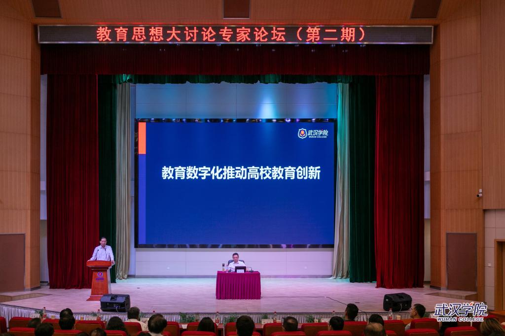 校长李忠云教授主持论坛并讲话。他表示,杨宗凯教授注重理论与实际相结合,运用大量案例进行讲解,整场报告精彩生动,对我校推进教育数字化进程具有指导、借鉴和推动作用。他希望全校各单位结合本单位实际,将推进教育数字化进程作为教育思想大讨论的重要任务,认真思考、加强研讨、凝练成果,积极推动我校教育数字化进程,助推教学改革和教学管理转型发展,为学校高质量发展添砖加瓦。