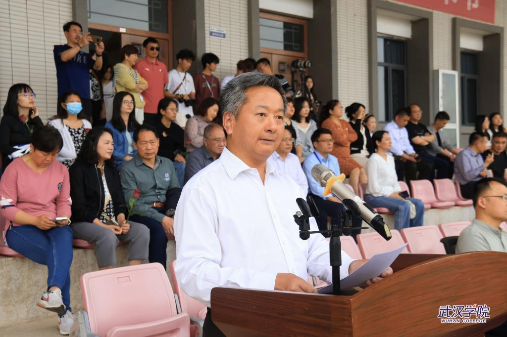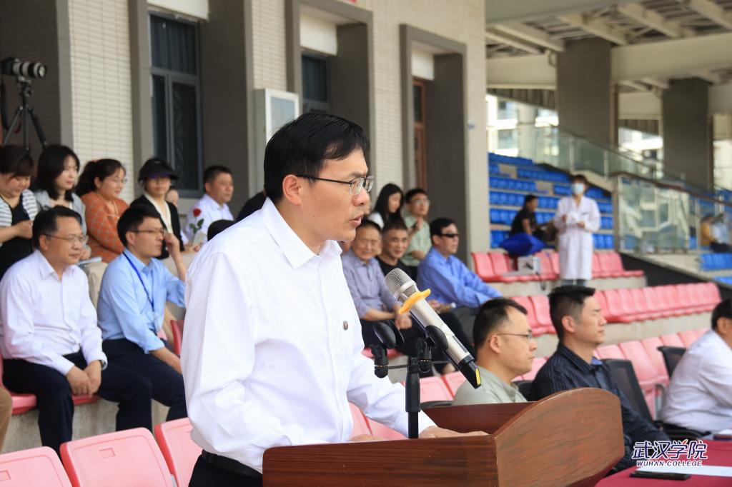 校党委书记陈祖亮致开幕词。他指出,学校正处于从强基固本向质量提高战略转变的新阶段,此次校园体育文化艺术节可以为这场转变赋能。希望大家坚持弘扬中华体育精神,展现武院人坚韧不拔、勇往直前的精神风貌,为中华民族伟大复兴凝神聚气。
