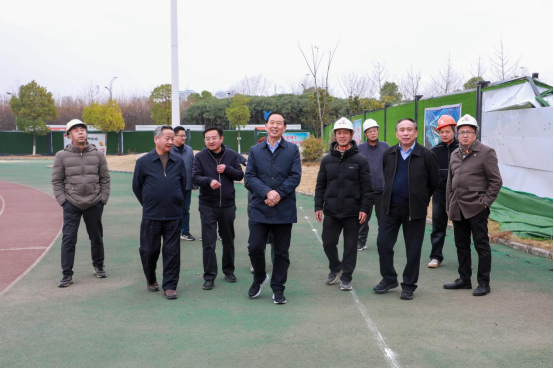 3月5日下午2时许,在我校体育馆即将封顶的关键节点,校长李忠云、党委书记陈祖亮、副校长周承早亲临现场,实地考察体育馆钢结构吊装准备工作,重点督导施工安全与质量管控。