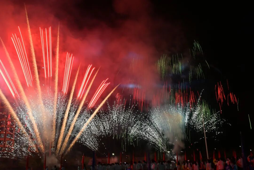 伴随着陈祖亮教授一声“开幕”响彻全场,刹那间烟花绽放,将武汉学院的夜空渲染得璀璨夺目。欢呼声与光影交织,映照在每一张仰望的笑脸上,师生们不约而同地高举手机,将这绚烂的“高光”时刻定格。
